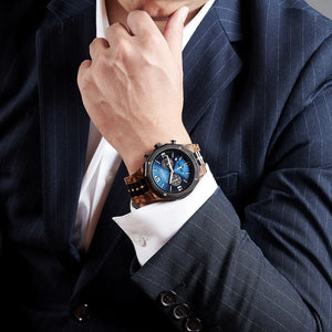 Featuring a generous chronograph display with luminous pointers, this watch shows time in a meticulous fashion. In addition, the chunky octagonal bezel adds the looks while the wooden strap with metal links feels amazing on the wrist.